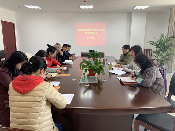3月25日上午,智控学院党总支部理论学习中心组在710会议室举行2019年第一专题集中学习会,学习习近平总书记在学校思想政治理论课教师座谈会上的讲话精神。党总支部书记戴典芬主持会议,学院副书记、院长杨忠等中心组成员参加会议。