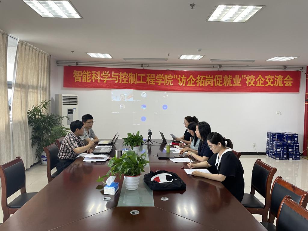 为贯彻落实党中央、国务院关于“稳就业”“保就业”“促就业”的决策部署,进一步促进自动化专业2022届毕业生更加充分、更高质量就业创业,6月22日下午15:00-16:00、6月23日上午10:30-11:30,智控学院在科技楼4号楼710会议室开展了两场“访企拓岗促就业”线上校企交流会,智控学院党总支部书记戴典芬,院长杨忠,副院长徐楠,南京美均电子科技有限公司董事长周志华、人事行政部总监黄唯逸,北京启创远景科技有限公司董事长秦志宏,自动化系系主任田小敏,学工办主任段蕊出席了此次交流会,会议由智控学院自动化系主任田小敏主持。