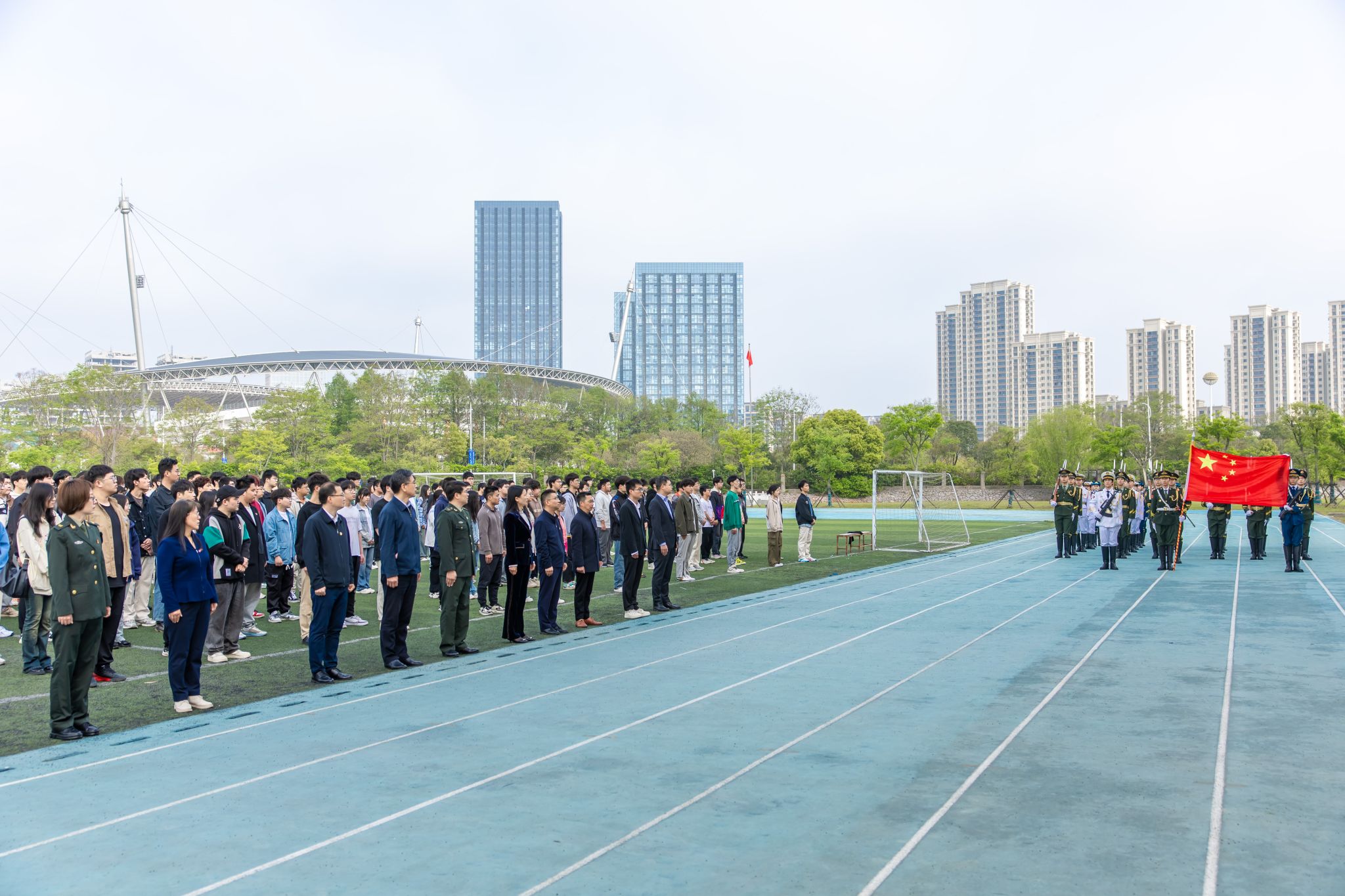 4月15日清晨,永利yl23411集团、马克思主义学院的500余名师生齐聚江宁校区北区田径场举行升国旗仪式,共上“国旗下的思政课”。校党委书记刘志远作国旗下的讲话,永利yl23411集团和马克思主义学院相关负责人、教师代表、全体学生参加仪式。